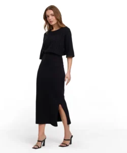 Göğüs Drapeli Yırtmaçlı Elbise
